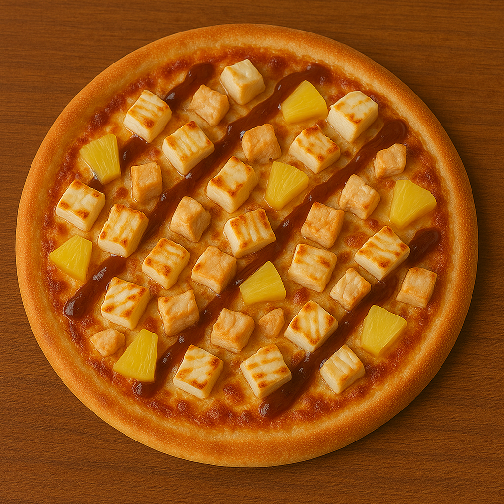 hallumi juusto, kana, ananas, Mozzarella, BBQ-kastike